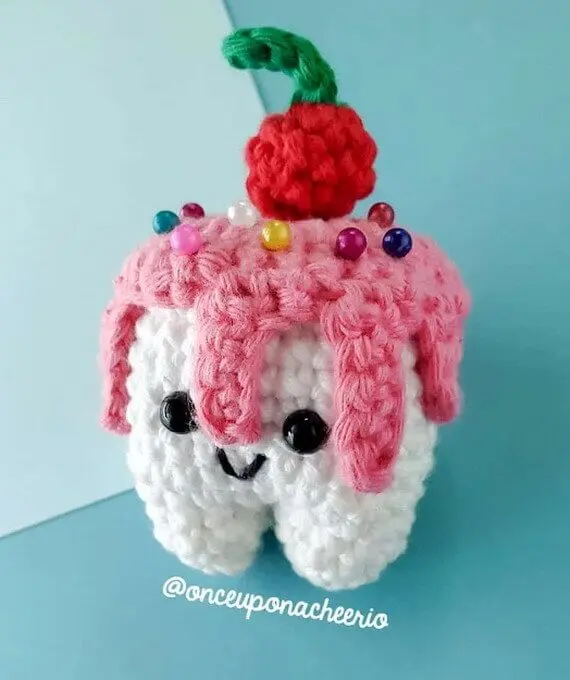 Transform your crafting space with the quirky charm of the Tooth and Sweet Tooth Pin Cushion Free Crochet Pattern! This delightful project is more than just an adorable plushie; it’s a dual-purpose marvel that serves as a unique pin cushion, adding both flair and functionality to your sewing corner. The sweet version comes adorned with colorful sewing pins that mimic sprinkles, offering a playful