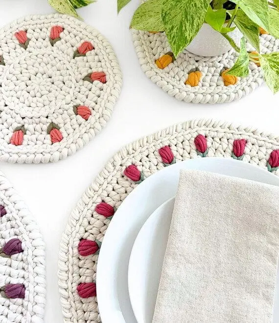 Bring the vibrant beauty of spring to your dining table with the delightful Crochet Tulip Placemat & Doily Set Pattern. This free crochet pattern allows you to craft charming placemats adorned with a stunning floral design, perfect for adding a touch of handmade elegance to any spring gathering. Imagine the cheerful pop of color these placemats will bring to a ladies’ luncheon, the