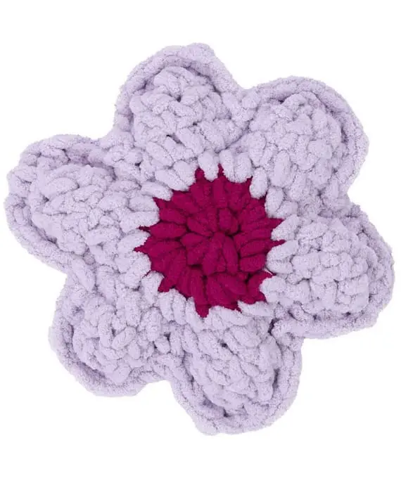 Who says flowers can’t be cozy? This jumbo-yarn crochet pillow blooms into a large, puffy flower with a bright contrasting center. The thick yarn gives it an extra-plush texture and bold volume, making it a charming accent on your sofa or bed. Soft, cute, and wonderfully oversized.