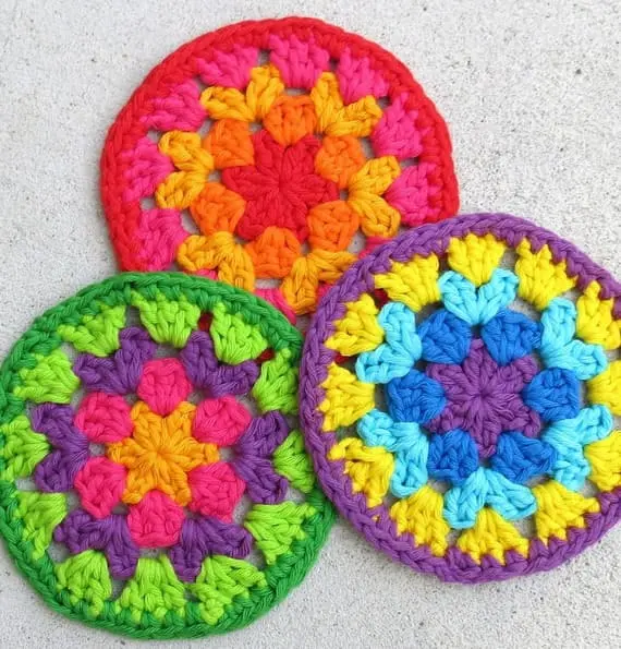 This floral crochet coaster is a cheerful little masterpiece. With bright petals in the center and vivid rings of color expanding outward, it’s the kind of small project that brings big joy. You can make your own collection using this beginner-friendly crochet pattern, perfect for gifting, decorating your table, or adding a handmade touch to your kitchen.