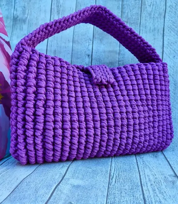A lovely crochet clutch bag in vibrant purple, complete with a short strap for easy carrying. Whether you hold it as a clutch or wear it on the wrist, it adds personality to any outfit. Perfect for summer events, casual dates, or simply elevating your everyday look. It fits the essentials and turns even a simple outfit into a bold fashion statement.
