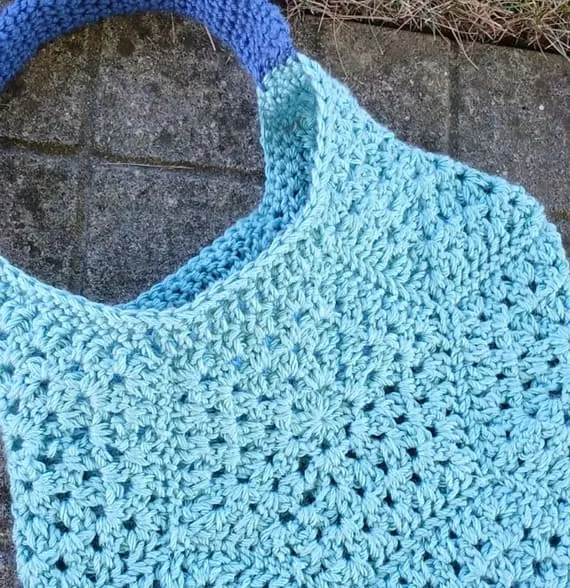 This crochet granny stitch bag uses just seven hexagons, but the result is anything but simple. Bold in design and endlessly adaptable, it can be styled as a casual pouch or a structured tote. The repeating pattern adds rhythm and harmony, and the handmade texture makes it a standout piece in any wardrobe.