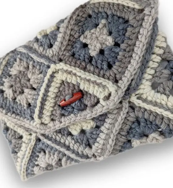 A retro-style crochet clutch made from colorful granny squares with a flap and button closure. It carries a vintage charm and handmade feel that’s impossible to miss. Great for casual outings, markets, or pairing with boho-chic fashion – a timeless, creative accessory. Each stitch holds character, making it both practical and delightfully nostalgic.