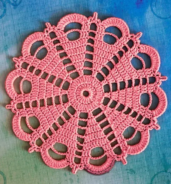 This elegant crochet pink doily looks just like a blooming flower. Crafted in lace style with detailed mesh inserts, it brings a soft and romantic atmosphere to any surface. Its petal-like pattern feels delicate but structured – a beautiful balance between craft and nature-inspired design. PHOTOS by Elsa Koss / Ravelry.com Find the original pattern on blueraindrops.com, or read more about it on