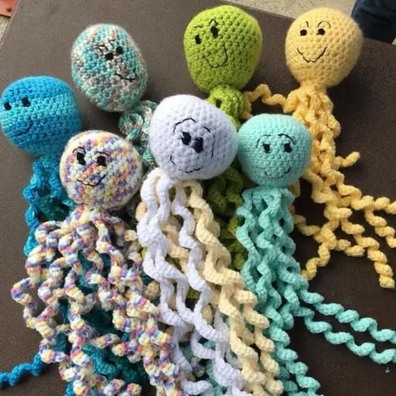 With a cheerful expression and irresistibly long, spiraled tentacles, this crocheted octopus is impossible to ignore. A detailed crochet pattern allows for endless customization, from playful facial expressions to unique color variations. A delightful design that captures the charm of the deep sea. PHOTOS by Logan Strong Foundation / Ravelry.com Find the original pattern on