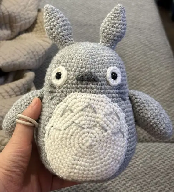 With wide, bulging eyes and a stiff upright pose, this crochet grey Totoro looks like it just heard something shocking. Its round body adds a comical contrast to its intense expression, making it look both startled and hilarious. A perfect mix of weird and cute, it stands out instantly. PHOTOS by This Paper Cloud / Ravelry.com Find the original pattern on Ravelry.