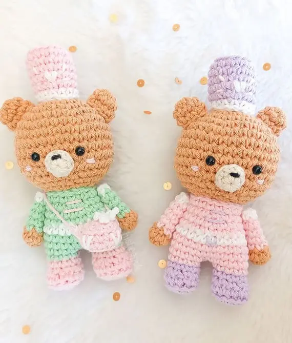 These crochet teddy bears are too cute to resist! Each one comes with its own outfit and quirky hat, making them wonderfully customizable. Mix and match colors, styles, and accessories to create your own little bear family. They’re funny, cuddly, and guaranteed to make you smile. PHOTOS by Milagros Sierra / Ravelry.com Find the original pattern on hisheepok.blogspot.com, or read more about it on