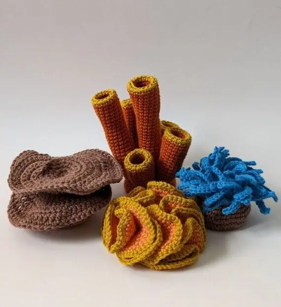 Underwater shapes and textures come alive in these crochet corals. Each one is unique and full of movement, just like real ocean life. Use them to build a miniature reef, add dimension to a themed project, or simply enjoy them as creative, colorful objects.