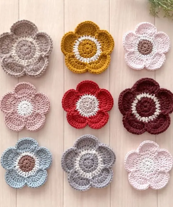 Add a touch of charm to your table with these crochet flower coasters! Each one features five soft petals and a contrasting center, creating a sweet and simple floral look. Mix and match your favorite colors to make a whole blooming garden of coasters; they’re perfect for gifting, decorating, or simply brightening your everyday tea. PHOTOS by Tomoko Hori / Ravelry.com Find the original pattern