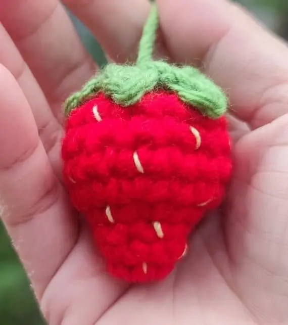 Crochet strawberry crafted with incredible detail looks so realistic it almost tempts you to take a bite. Its plump red body is accented by tiny seeds and delicate green leaves, making it perfect for lifelike decorations or playful projects where realism matters most. Every stitch brings this juicy berry to life in a charming way. PHOTOS by Rhea Papellero / Ravelry.com Find the video tutorial on