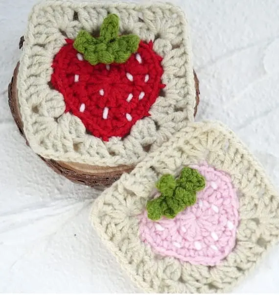 A charming crochet square features a strawberry at its heart, complete with a 3D leaf that adds texture and depth. You can play with shades of pink or red to suit your taste. Perfect for patchwork throws, bags, or playful seasonal coasters. Use it in garlands, blankets, or frame it as a cute standalone motif. PHOTOS by Loopara Crochet / Ravelry.com Find the original pattern on loopara.com, or