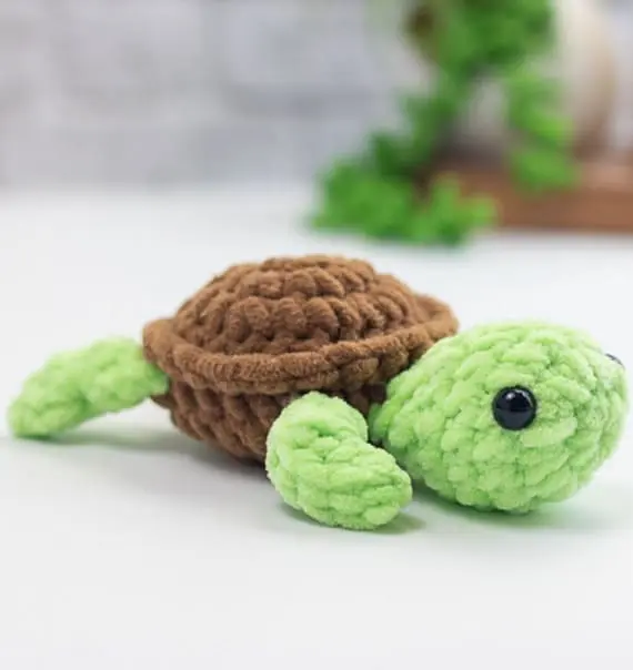 Soft, plush, and irresistibly cute this crochet turtle is made with fluffy yarn for extra coziness. It features a brown shell and green head and limbs, capturing a lifelike yet cuddly look. Perfect as a toy, desk buddy, or huggable gift for any turtle fan. PHOTOS by Nicki’s Homemade Crafts / Ravelry.com Find the original pattern on nickishomemadecrafts.com, or read more about it on Ravelry.