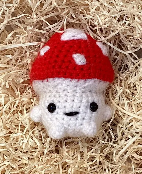 This tiny crochet mushroom is pure joy in miniature. With a plump cap, stubby feet, little arms, and big friendly eyes, it looks like it walked out of a video game. Beginner-friendly and super quick to make, it’s perfect for practicing shaping while creating a lovable buddy for your desk or shelf. PHOTOS by Agustina B. Ortego (Shellowy) / Ravelry.com Find the original pattern on Ravelry.