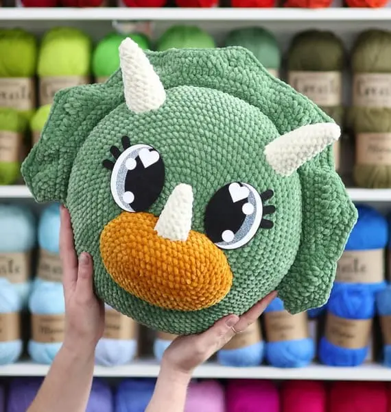 Soft, squishy, and full of charm, this crochet dinosaur pillow will melt your heart. Big eyes and a friendly shape make it perfect for kids’ rooms or playful spaces. It’s both a cuddly toy and a decorative piece – fun to make and even more fun to hug.