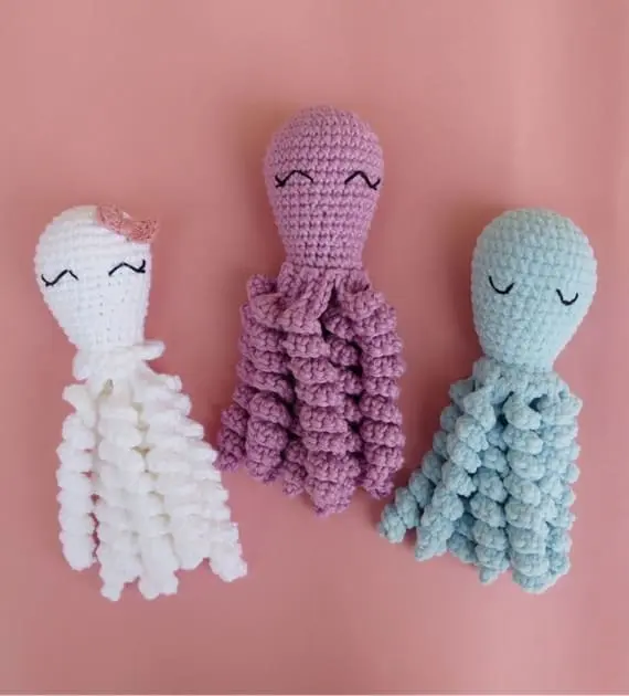 This lovely Octopus with spring-shaped legs will be a wonderful gift for your nerborn baby. You can choose male or female version of octopus, to make favourite toy for your little family member! Choose bright, subdued colors and make this cutie today! PHOTOS by Anna Maria Liasch da Silva / Ravelry.com Find the original free pattern on Ravelry.