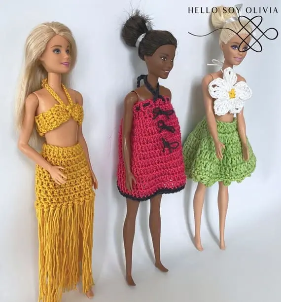 With this free crochet pattern, you can create three unique outfits for Barbie dolls – perfect for mixing, matching, and storytelling. From casual to glam, these outfits are stylish and modern. Dive into this fun project and transform your doll’s wardrobe with your creativity. These tiny crochet garments are great practice for shaping and finishing techniques. PHOTOS by Marcela Selman /