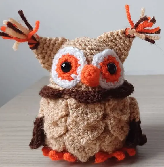 Who could resist this funny crochet owl? Made in crochet with fluffy feathers that resemble layered scales, it has wide comic eyes, a bright orange beak, and dramatic ear tufts with tassels. Quirky and adorable, it’s a joy to make and show off. PHOTOS by Ambros Crochet / Ravelry.com Find the video tutorial on YouTube, or read more about it on Ravelry.