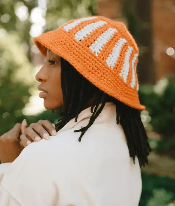 Bright, bold, and full of personality, this orange crochet bucket hat is the definition of playful style. Its slightly rolled brim gives it a relaxed, lived-in look, while the body features perpendicular stripes in warm shades of orange, and beige. A true summer essential, it pairs perfectly with sundresses, denim, or even a swimsuit on vacation. PHOTOS by Toni Lipsey / Ravelry.com Find the