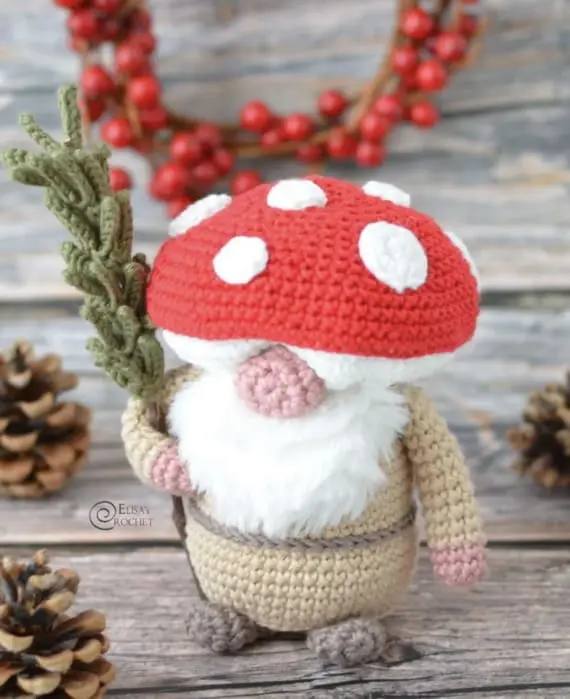 This is not just a crocheted mushroom – it’s a little gnome disguised as a classic red amanita. The cap is bright with iconic white dots, but underneath you’ll find a full character: a whimsical gnome body with tiny arms, legs, and a big silly nose. It’s playful, detailed, and full of personality, perfect for gifting or adding charm to your handmade decor. PHOTOS by Elisa’s Crochet /