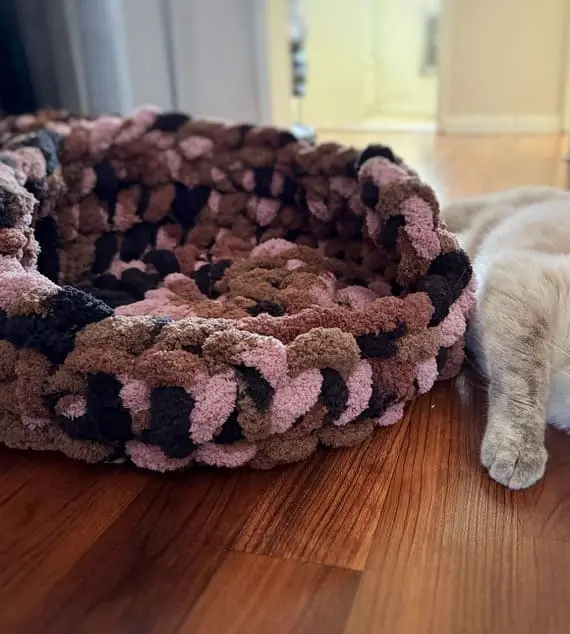 With its jumbo yarn and plush structure, this crochet cat bed feels like a cloud shaped into a nest, offering your pet the softest place to sleep. Its oversized texture makes it quick to make and striking to look at – a cozy decor piece that cats instantly claim. PHOTOS by Nerdy Little Stitches / Ravelry.com Find the original pattern on Ravelry.