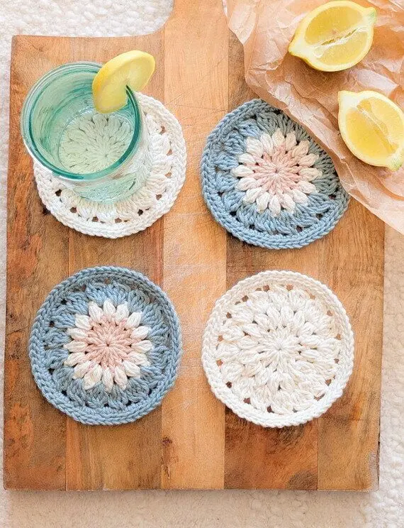 This Boho Bloom Coasters Free Crochet Pattern is perfect for adding a splash of handmade charm to your table decor! Crafted in a classic round shape, these coasters offer endless possibilities—choose your favorite single shade for a minimalist look or mix and match vibrant hues for a joyful, boho-inspired flair. The floral-inspired design works up quickly, making these delightful coasters an