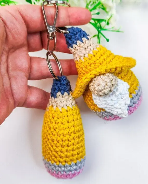 This Pencil Gnome Keychain Free Crochet Pattern is a quick and easy project. It allows you to create an adorable gnome cleverly designed to resemble a pencil, making it a truly unique and charming gift. Imagine the smiles you’ll create by gifting these to teachers, students, or anyone who appreciates a touch of whimsical handmade charm. The joy of crafting such a cute and practical keychain,
