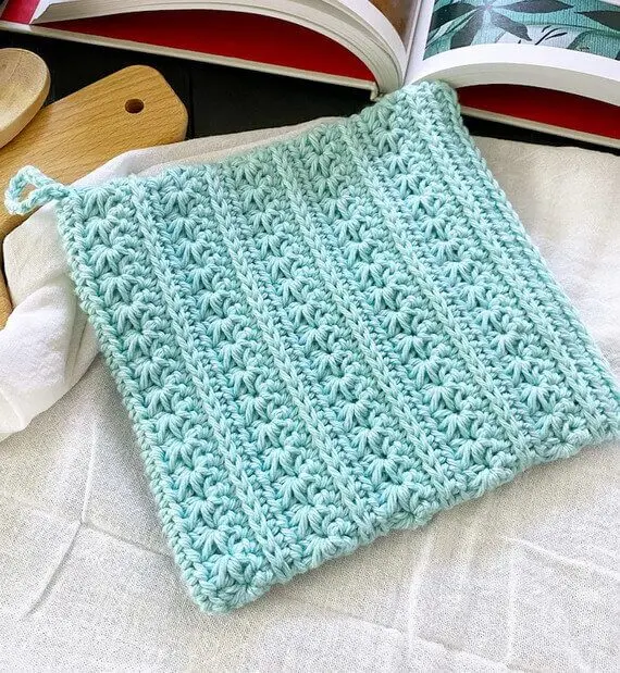 Sharing the perfect addition to any kitchen – the Star Stitch Potholder! This pattern not only creates a functional pot holder to help protect your hands from hot pans, but it also adds a lovely touch of texture and style to your kitchen decor. The double thick design, using a combination of single crochets, half double crochets, and star stitches, creates a durable and reliable potholder that is