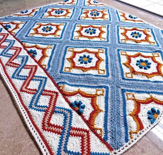 Inspired by the intricate beauty of tile patterns, the Blair Road Blanket Free Crochet Pattern transforms the geometric elegance of tiles into a cozy, tactile experience. This stunning blanket melds modern design with traditional craftsmanship, offering a delightful challenge for crocheters. This blanket is ideal for adding a sophisticated touch to any living space. It is also functional and a