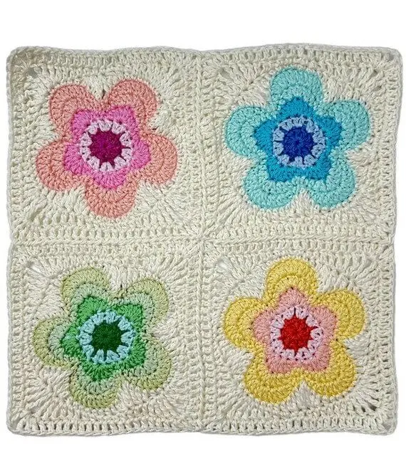 This Groovy Flower Square Free Crochet Pattern combines simplicity with intricate design to create a square that is both fun and visually stunning. This pattern’s vibrant colors and basic stitches will make it a standout piece in any crochet project. Whether you use it in a blanket, cushion cover, or even a tote bag, the vibrant flower motif will surely bring a touch of charm and elegance to your