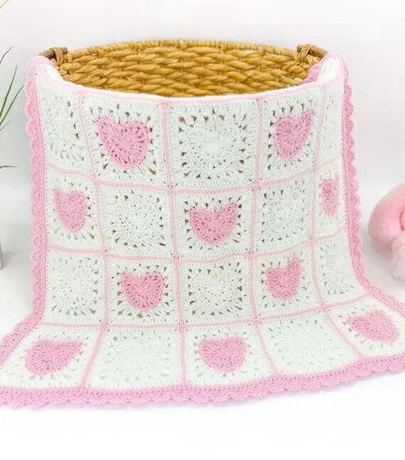 There’s something so special about handmade baby blankets, especially when they’re made with love. And the Heart Granny Square Blanket Free Crochet Pattern is the perfect way to show your love and create a beautiful and practical gift for a little one. This delightful pattern combines the traditional granny square with adorable heart motifs, resulting in a charming and cozy throw that is sure to