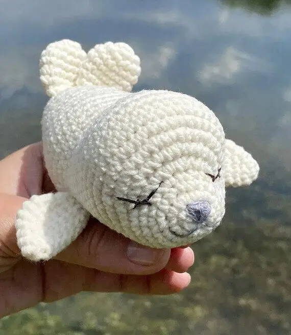 This baby seal crochet is pure serotonin in yarn form. With soft white plush yarn, tiny flippers, and peaceful closed eyes, he looks like he just finished meditating underwater. It’s so adorable that you’ll want to make a whole sleepy seal family. You can make one just like it using this free beginner-friendly crochet pattern that’s soothing to stitch and a joy to gift.