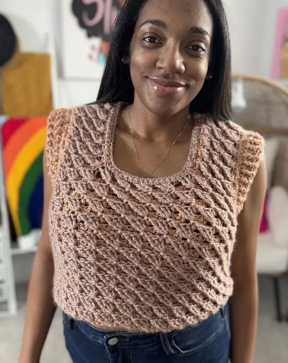 If you’re ready to try something truly different, this crochet top will grab your heart. With fascinating 3D triangle textures forming diagonal patterns, broad shoulder lines, and “winged” sleeve details in a contrasting color, it’s a statement piece. Add a flattering neckline and bold silhouette, and you’ve got a top that screams confidence and creativity. PHOTOS by Creations By Courtney /