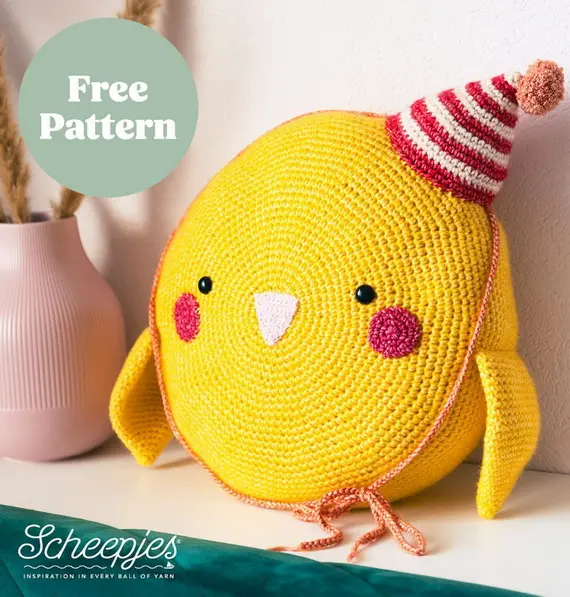 Ever wanted a cushion that sings with personality? Meet the crochet canary pillow. Round and squishy, this little bird features a tiny striped hat, rosy cheeks, and side wings. It’s playful, cheerful, and soft enough to cuddle. Whether for a kid’s room or a happy corner in your home, it’s sure to become a favorite.