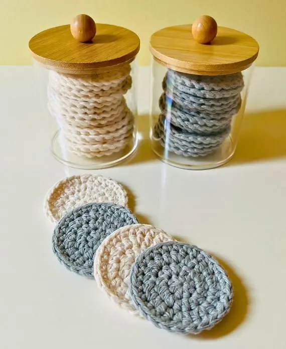 Elevate your skincare routine with a round crochet scrubber, crafted from dense yarn for a firm yet gentle texture. Making a set ensures you always have a fresh one on hand – store them in a clear jar and rotate daily before washing. Perfect for facial cleansing or dishwashing, it’s a sustainable swap for disposable sponges.