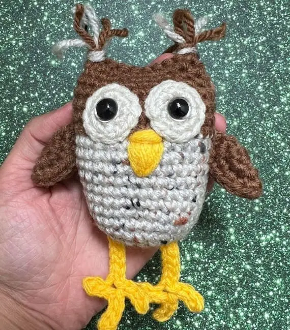 Meet the crochet owl that’s guaranteed to make you smile. With oversized eyes and tiny tufts of yarn sticking out like wild ears, this crochet creature is bursting with personality. It’s goofy, adorable and full of charm. A perfect project to bring joy to your desk, shelf or someone’s day.