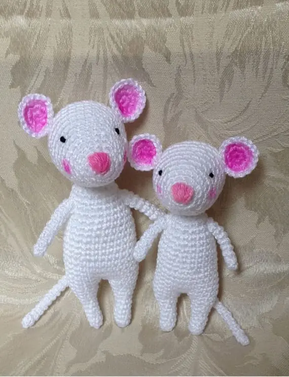 Create your own crochet little mouse family with this easy and adorable crochet pattern. These sweet white mice stand on their back paws, with blushing pink cheeks, inner ears, and tiny noses. They’re charmingly lifelike, yet full of character. Make a pair or better yet, a whole mischief of them! PHOTOS by Uljana Semikrasa / Ravelry.com Find the original pattern on Ravelry.