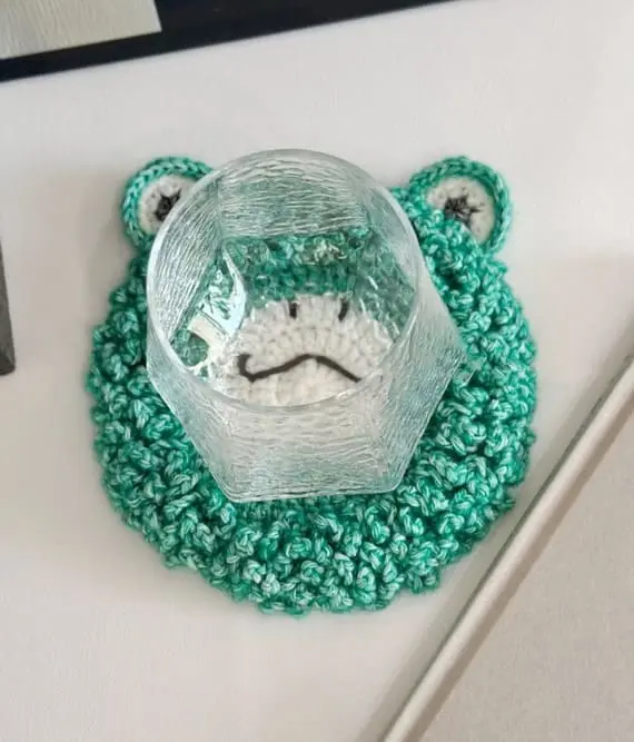 Why settle for a plain circle when you can have a frog face smiling up at you while you sip your tea? This crochet coaster doubles as the most charming amphibian portrait, complete with big eyes, plump cheeks and a cheeky grin. Equal parts functional and fun, it instantly brings playfulness to your table. PHOTOS by Kathy Leung / Ravelry.com Find the original pattern on directsourceyarn.com, or