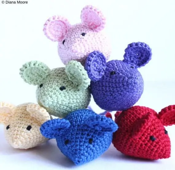 I love how sweet these tiny mice are. You can make a whole bunch of them in literally no time at all. In addition, you can make a cute cat toy of them (but in that case remember to replace any plastic elements for embroidery and make sure not to leave any loose threads). PHOTOS by Diana Moore / ravelry.com Find original free pattern on pinkmouseboutique.com, or read more about it on Ravelry.