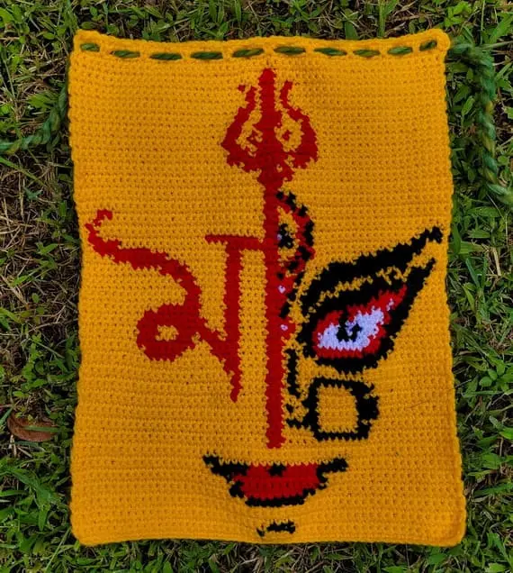 This beautifully crafted crochet wall hanging showcases the goddess Durga in striking detail, adding a bold, graphic element to any space. With its clean lines and intricate design, it stands as a symbol of strength and beauty. Ideal for those who appreciate artistic and spiritual decor, this piece makes a statement in any room. PHOTOS by Arpitha Bhat / Ravelry.com Find the original pattern on