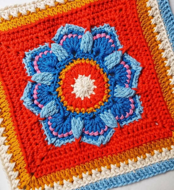 This crochet floral granny square isn’t your average block. In the center blooms a layered flower, surrounded by color-rich fields. Use bold shades for a statement look – combine several for striking blankets, cardigans, or home decor. Crochet your own with this free simple crochet pattern and start building beauty. PHOTOS by Best Crochet Life / Ravelry.com Find the original pattern on