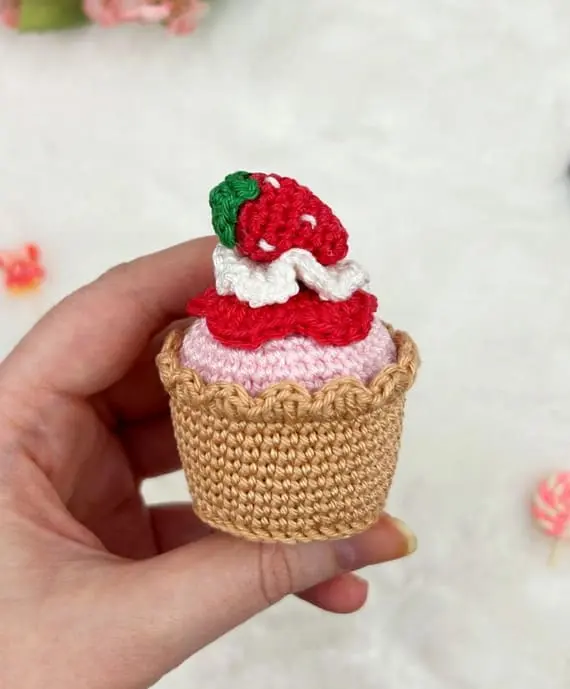 Ever dreamed of holding a cupcake that never goes stale? This crochet strawberry cupcake looks almost too good to be true – with a fluffy swirl of pink filling, realistic ridges, and a plump strawberry on top. It’s perfect for playful decor, photo props, or a sweet gift for someone who loves desserts without the sugar. Tempted yet? Grab your hook and start stitching this delicious delight! PHOTOS