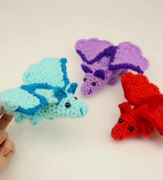 Are you a Mother of Dragons? Here are your fire-breathing babies! This Scrap Dragon Amigurumi pattern is free and relatively easy. It makes almost in one piece — you will crochet only wings and ears separately. The length is about 5.5” — a small and adorable amigurumi toy. Find the original free pattern on stringydingding.com, or read more about it on Ravelry.