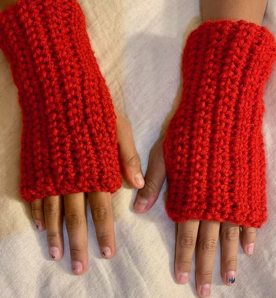The textured design of these crochet fingerless gloves offers a stylish solution for keeping your hands warm while maintaining full mobility. Crafted with a ribbed design, they provide a snug and comfortable fit, making them perfect for layering with any outfit. Whether worn casually or as part of a more polished look, they offer a blend of function and fashion. Find the original pattern on