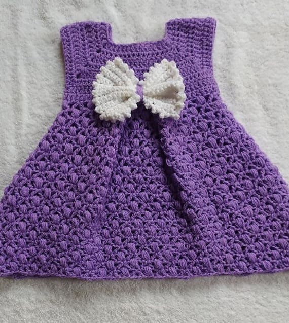 This charming crochet baby dress is a perfect blend of classic and playful. The bodice features a dense, textured stitch that provides structure, while the skirt flares out gently with a soft puff stitch resembling a delicate bell. A contrasting white bow on the front adds a finishing touch of innocence and sweetness, making it ideal for special occasions. PHOTOS by Sulaimon Toyyibah /