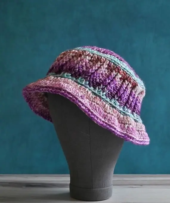 Relaxed but far from basic, this crochet bucket hat blends soft structure with a killer palette: beige, peach, lilac, turquoise, and deep violet. It’s made for long summer days and lazy afternoons. The slightly slouchy crown and textured stitches give it that laid-back luxury look – like beachwear went designer. Just try not to fall in love. Impossible. PHOTOS by Underground Crafter / Ravelry.com