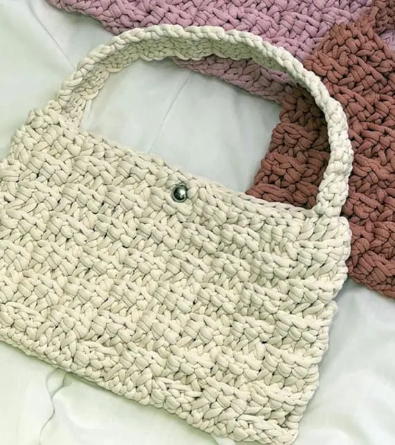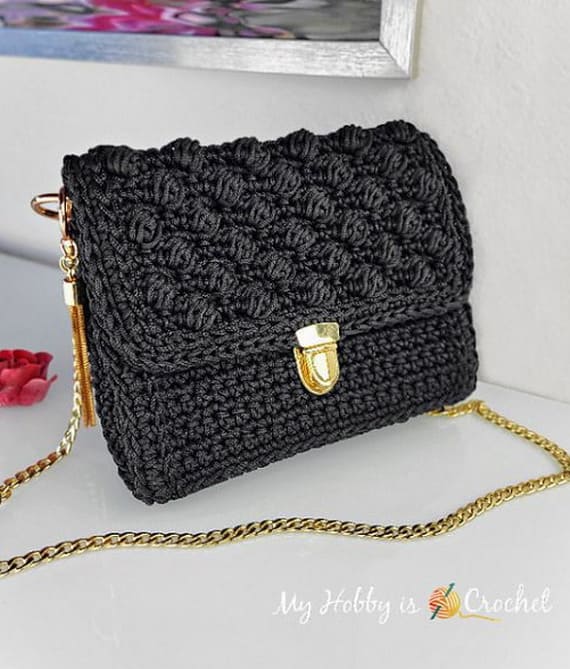 The construction of this black crochet clutch bag is rather classic and, therefore, always trendy. This crochet purse bag is equally suitable for formal meetings or a club outing. If you only need to carry a few essentials, it’s a great choice. The pattern for this bag is free and easy to follow. Check the additional supplies needed.