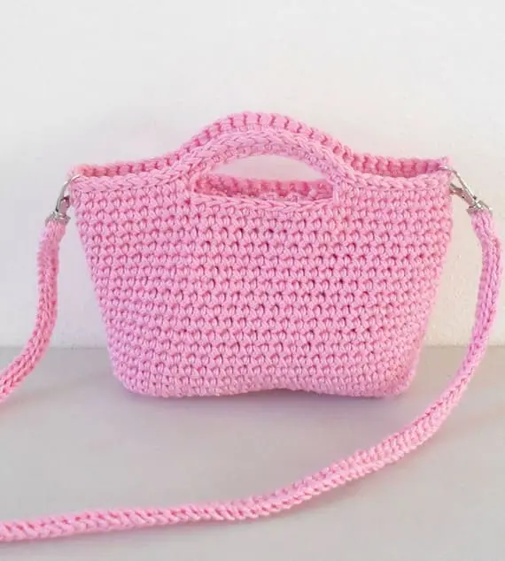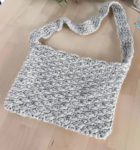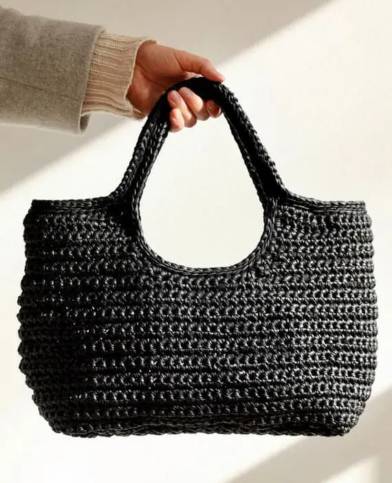 If you’re looking for the “wow” factor, this crochet shoulder bag delivers. Crafted from yarn that looks like eco-leather, it’s sleek, trendy, and impressively roomy. Its texture and shine make it stand out in any crowd. It’s a bag that doesn’t whisper fashion – it shouts it.