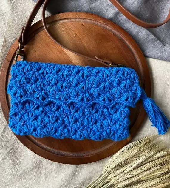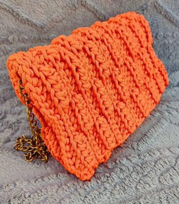 Another good clutch, but more casual and great for a regular walk when you want to enjoy the weather and not feel a heavy backpack on your shoulders. This crocheted purse is single-colored but has a voluminous texture. Feel free to choose the color that suits you best and get crocheting.