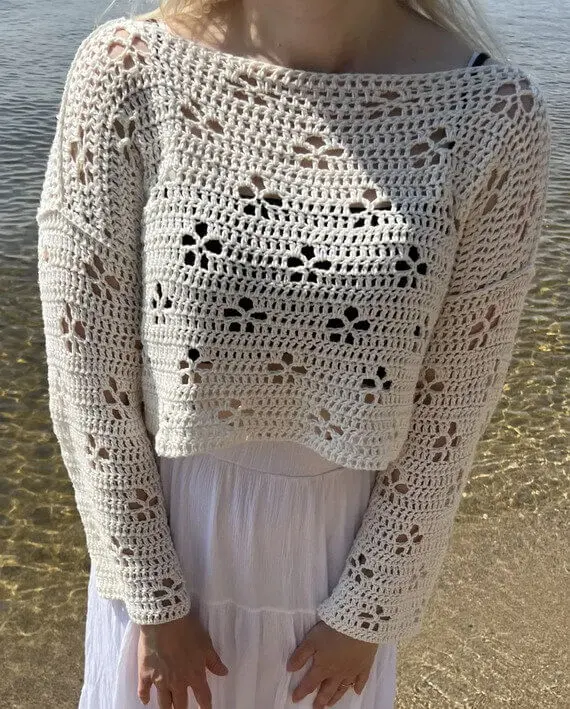 The Cherry Blossom Sweater Free Crochet Pattern is the perfect project to add a touch of delicate elegance to your handmade wardrobe! This easy crochet sweater pattern for women features a relaxed fit and graceful details that make it both comfortable and stylish for any season. Available in sizes from XXS to 5XL, the lace pullover celebrates every body shape with its flattering silhouette and
