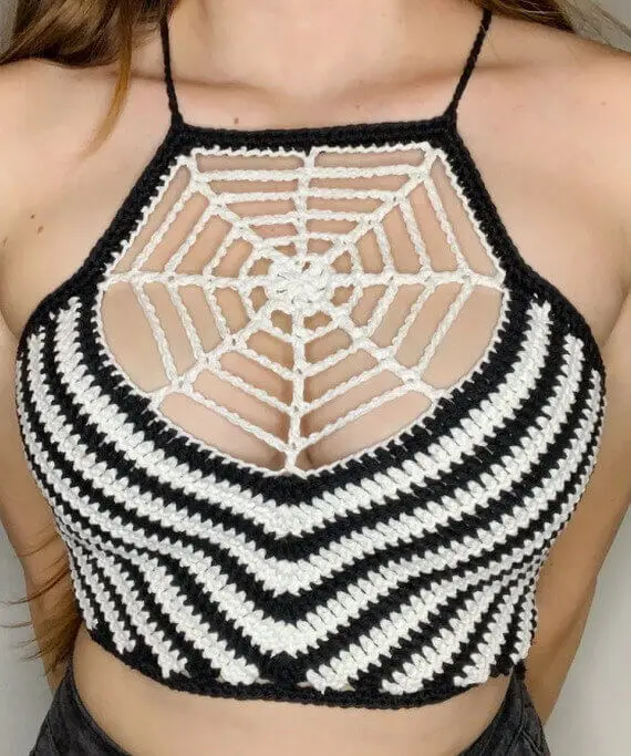 Get ready to add a touch of Halloween magic to your wardrobe with this Spiderweb Halter Top Crochet Pattern and Video Tutorial! This eye-catching crop top gives your spooky season style a mystical flair, showcasing a bold, web-like design that’s ideal for parties, festivals, or a night out trick-or-treating. With a detailed video guide, even adventurous beginners can bring this creative crochet